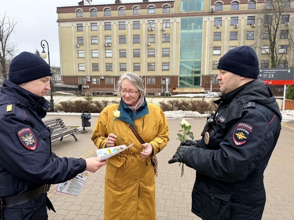 В преддверии 8 Марта на Северном вокзале Калининграда прошла акция «8 Марта — в каждый дом». Сотрудники транспортной полиции и члены Общественного совета поздравили пассажирок с праздником, вручили им белые розы и пожелали весеннего настроения.
